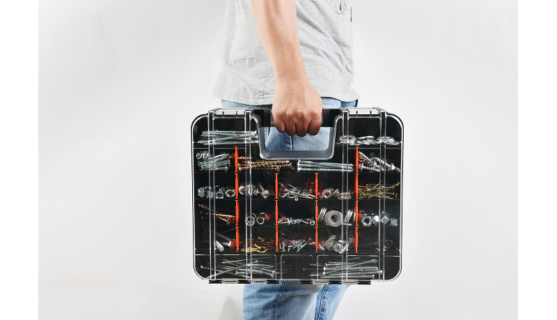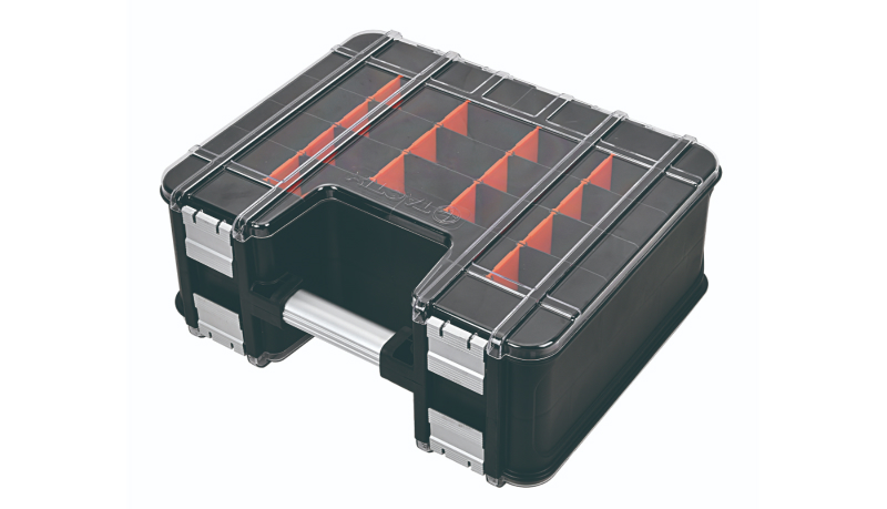 This Double sided organiser with 8 removable bins on one side and dividers on the other is ideal for the tradesperson and home handyman alike. Great for storing nuts, bolts, nails, screws and other small parts.